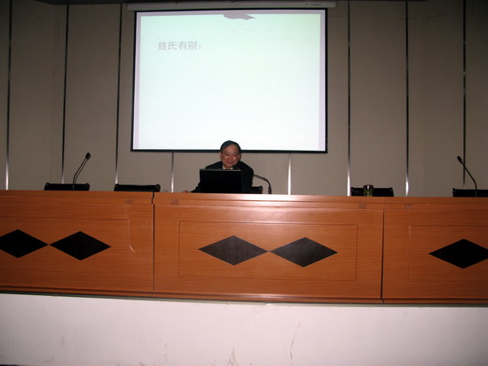 徐北平主任从称谓的产生及演变说起,介绍分析了古代常见称谓,指出称谓的实质,着重说明称谓在今天的借鉴作用。徐主任引用近现代一些文函实例进行赏析,并且列举当代一些有关称谓与大家进行讨论修改。他指出,称谓是我们民族传统文化遗产的一部分,应该用历史唯物主义的观点辨证地对待,称谓运用要有继承,要推陈出新、与时俱进、合乎适宜。 徐主任的报告生动深刻,精彩纷呈,博得了现场师生的阵阵掌声。 |