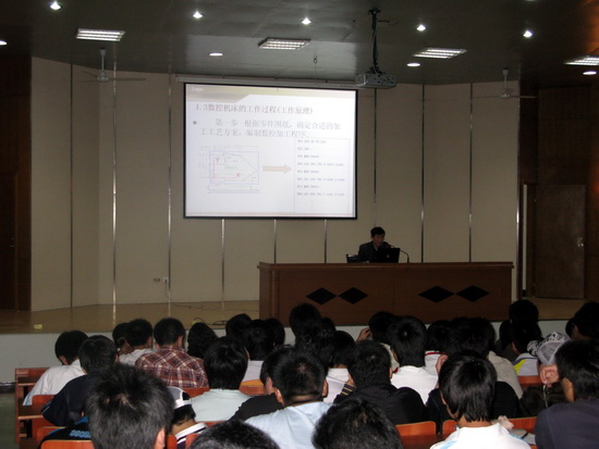 4月23日晚,本学期“科学人文艺术素质教育”系列讲座第五讲在院图文信息中心一楼报告厅进行,机电工程系吴福贵老师作题为《现代数控技术的发展及就业前景分析》的专题讲座。我院部分教师和600余名学生聆听了报告。 吴福贵老师首先向大家介绍了什么是数控技术、数控技术的发展历程、数控技术的重要地位和我国数控技术的发展现状,然后,从人才需求旺盛的重点行业、工作岗位分类、需求数量等方面分析了数控专业人才就业前景。 吴老师在讲座中运用了丰富的视频和图片,使报告更加生动直观。其报告内容针对性强,对相关专业学生的学习成才具有很强的指导意义。