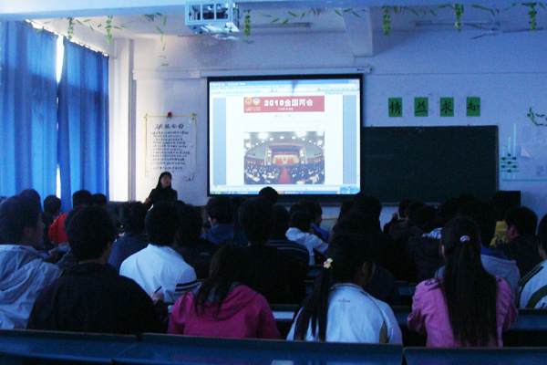 在全国两会召开前,思政部对开展“两会在大学生身边”主题教育活动作出安排,要求教师在课堂上全面宣传“两会”精神。在两会召开期间,思政课教师在课堂上对政府工作报告中提出的关于今年政府工作的指导原则、目标任务、工作思路、主要部署和重要举措向学生进行解读,并组织学生针对两会中的“民生问题、经济发展、医疗改革、大学生就业”等热点问题进行了激烈的讨论。此次主题教育活动很好地宣传了“两会”精神,充分调动了广大学生自觉学习“两会”精神的积极性。同学们纷纷表示,作为当代大学生,在关注“两会”的同时,要将其精神注入自身的思想,落实到具体的实践中,共筑和谐校园。