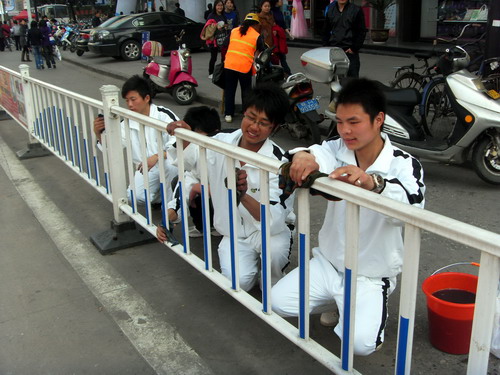 为体现党员的先进性,用实际行动践行科学发展观。2010年3月17日下午2点30分,在经济贸易系党总支的精心布置和安排下,经贸系的12名学生党员和四十多位入党积极分子自带工具前往安庆市区最繁华的路段―――人民路清洁道路两旁的护栏和铲除电线杆上的小广告及城市“牛皮癣”。在邮电局至水明月的路段上,身穿beat365体育官网平台洁白校服的青年大学生们仔细地擦拭着道路两旁的护杆。春天暖热的阳光普照着繁华的都市,环境与氛围的交融使得同学们满脸汗珠,但他们发扬了一不怕苦二不怕累的精神,埋头苦干。同学们的一丝不苟感染了路人,他们无不称赞这群可爱的大学生。他们的行为彰显了当代大学生的精神风貌,表现出要做为一名合格的党员应具备的素质。