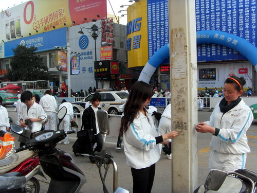 经贸系组织入党积极分子举行“清除城市牛皮癣,美化宜城”活动