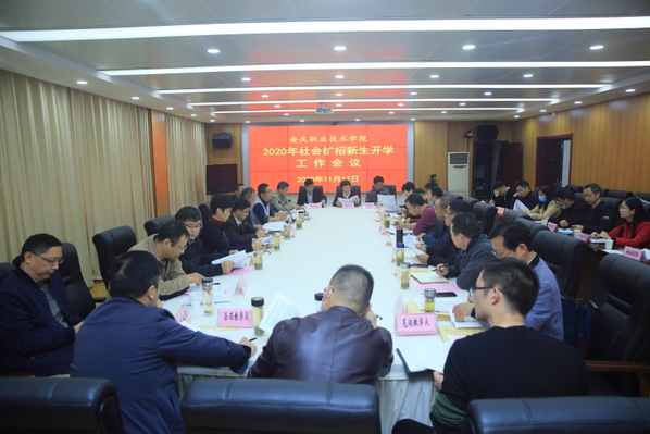 11月17日上午,我院在综合办公楼第二会议室召开2020年社会扩招新生开学工作会议。校长毕明生出席会议并讲话。副校长谭维奇主持会议,各分院、二级学院、学生处、教务处、财务处、总务处、招就处、保卫处、成教部等负责同志参加会议。