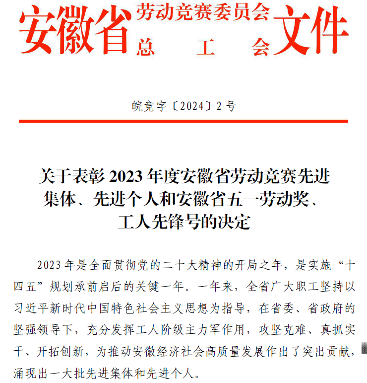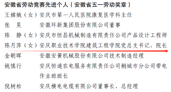 “五一”前夕,省劳动竞赛委员会、省总工会决定,授予365官网陈月萍教授2023年度安徽省劳动竞赛先进个人,并颁发安徽省五一劳动奖章。