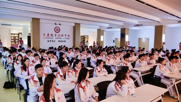 4月11下午,beat365体育官网平台艺术团课黄梅戏《红灯永照——生命的承诺》在幼儿实训厅开演,校党委委员、统战部部长李五一,团安庆市委副书记、管理服务学院院长陈颖、校团委工作人员与全校200余名团干、团员代表共上团课。