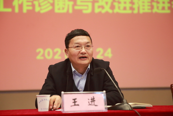 王进在总结讲话中对教学诊改工作提出了三点要求。 一是以质量标准为教学诊断与改进的目标。教学诊断与改进是为了提升质量,任何质量都是有标准的,我们要把握好每一个教学环节质量标准。 二是以精准诊断为问题导向。质量高低是通过定量与定性分析来把控的,其最核心的环节是诊断,要找准问题,以问题为导向确定诊改方向。 三是以落实改进为诊断与改进的目的。诊改的目的是要把诊断中查找到的问题进行改进,达到质量要求,满足质量标准,真正实现对教学工作的诊断与改进。