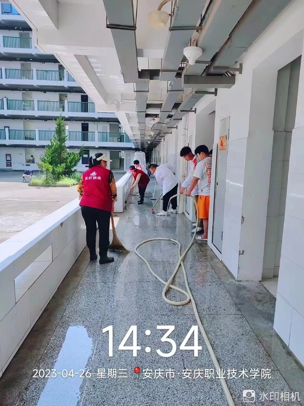 劳动是伟大的,劳动是光荣的,在“五一”国际劳动节来临之际,4月26日长红物业与住宿学生开展宿舍楼公共区域的卫生大扫除的联谊活动。