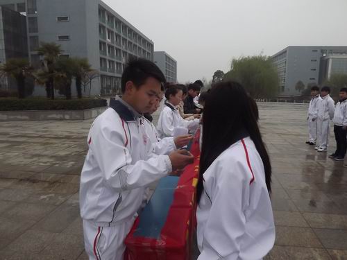仪式在嘹亮的国歌声中开始。首先,主持人宣读了院团委《关于同意曾陈龙等108位同学加入中国共产主义青年团的批复》。接着,由老师们为新团员佩戴上鲜艳的共青团团徽。然后,由系团总支副书记方云同学带领着新团员站在国旗下宣誓,紧握的拳头,坚定的目光和铮铮的誓词展现出共青团员积极向上的活力和朝气。13汽修班查强同学从一名老团员的角度倡议大家要积极行动起来,践行社会主义核心价值观,号召全体新团员像雷锋那样乐于助人,无私奉献。