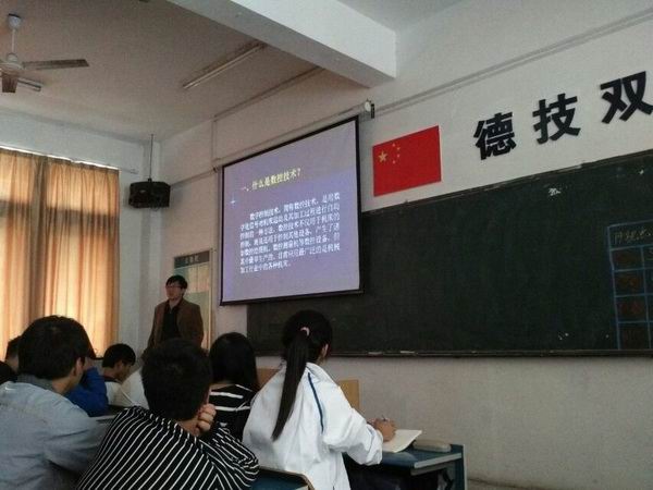 教室举行了数控技术专业认知教育,数控教研室主任吴福贵老师主讲,