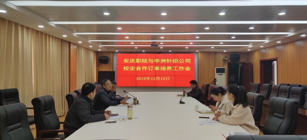 12月13日,我院与申洲针织(安徽)有限公司合作订单培养工作会议在综合办公楼第二会议室举行。我院副院长谭维奇主持会议。会上,双方就2017级-1019级三届校企合作订单班的学籍管理、班级管理、教学管理等工作进行总结与交流。本次工作会议为后续校企合作订单培养作了经验总结,理清了工作思路。