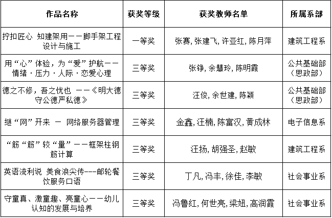 近日,安徽省教育厅发布了《关于公布2020年安徽省高等职业院校教学能力大赛获奖名单的通知》,对比赛获奖名单进行公布。365官网推荐的参赛作品荣获一等奖1项,三等奖6项。