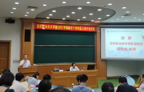 谭维奇对厦门大学教师发展中心的精心组织表示感谢。同时,他对参加本次培训全体学员提出几点希望。第一,学习要用心。用心听、用心看、用心记,结合工作思考、联系实际总结、深化三教改革。第二,组织要精心。培训期间,教务处、人事处人员要为学员提供好学习以及生活服务,组织好学员间的学习交流,确保本次培训顺利进行。第三,生活要顺心。培训期间要严格遵守相关纪律和要求,特别是防疫的相关规定,出行注意安全,合理安排学习和生活。