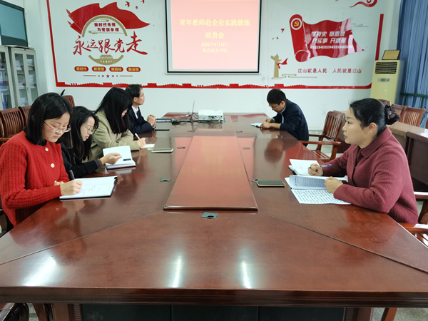 4月13日上午,现代商务学院专门在3号教学楼510会议室召开青年教师赴企业挂职锻炼动员会。动员会上,学院分管负责人对青年教师做了动员和指导,要求青年教师深入实践领域内锻炼,充分了解企业文化及需求,掌握工作应用所需要的知识和技能,要在社会实践中丰富自身阅历,要同时提高自身实践开发与指导学生积极探索解决实际问题的能力。产教相结,融会贯通,突破教学理念,提升教学能力。青年教师都作了表态发言,纷纷表示将珍惜此次挂职锻炼的机会,虚心学习,及时归纳总结,争取学有所获。