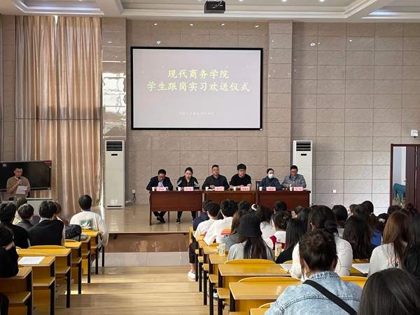 5月14日上午,现代商务学院在3号教学楼316教室召开20级电子商务专业156名学生赴企业跟岗实训欢送会,安徽云霁电子商务有限公司总经理程赛超和现代商务学院分管负责人、学生管理科科长、教学管理科科长、电子商务专业教师代表、辅导员和即将赴企业的156名学生参加了欢送会。