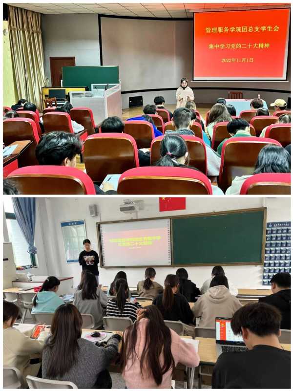 管理服务学院团总支通过多措并举,引导团员青年进一步学习领会党的二十大精神和丰富内涵,让党的二十大精神在团员青年中入脑入心,激发广大同学们爱党爱国热情,自信自强,踔厉奋发,以更加昂扬的姿态放飞青春梦想。(文:梁妞 图:新媒体部 各辅导员 审核:陈颖 )