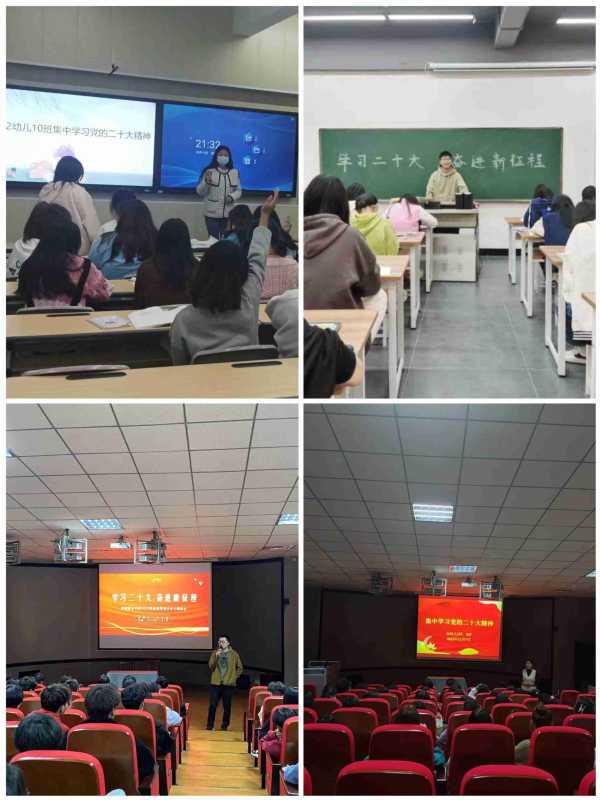 此外,各班辅导员在院党总支指导下,认真学习党的二十大精神,通过生动的ppt和视频媒介,线上线下在各班级进行领学促学,向学生传达党的二十大精神。
