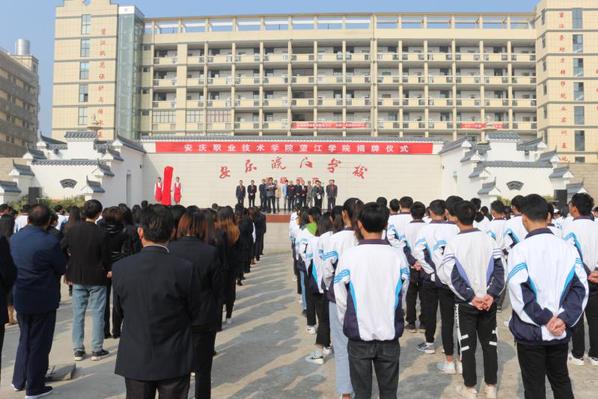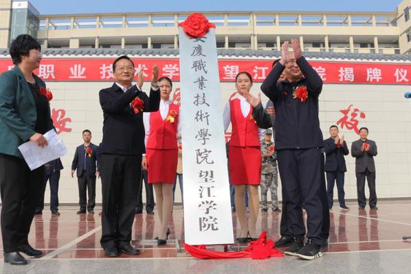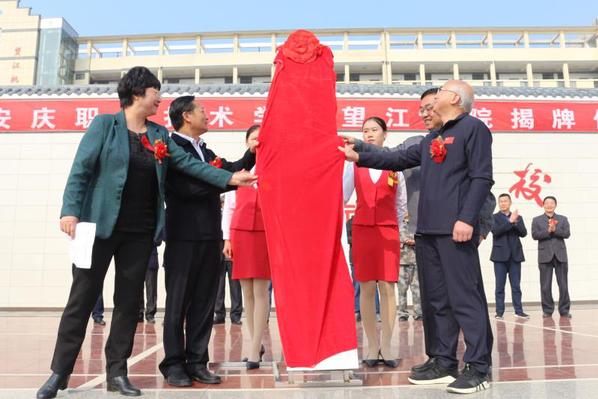 11月8日,beat365体育官网平台望江学院挂牌仪式在合作学校安庆皖江中等专业学校隆重举行。这是我院与安庆职教集团内优质中职学校合办的专业学院。安庆市人大常委会副主任童学军,安庆职教集团理事长、学院党委书记王进,望江县人大常委会主任汪洁、副县长王珍珍出席并揭牌。仪式由王珍珍主持。望江县高职扩招领导小组成员单位负责人,安庆皖江中等专业学校董事长吴灿及全体师生参加揭牌仪式。