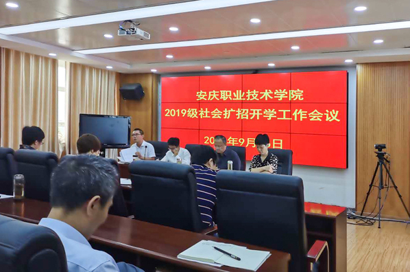 9月16日上午,我院在综合楼四楼第二会议室召开2019级社会扩招学生开学工作会议。院长毕明生出席会议并讲话,副院长谭维奇主持会议。教务处、学生处(团委)、各系、各分院负责同志参加会议。