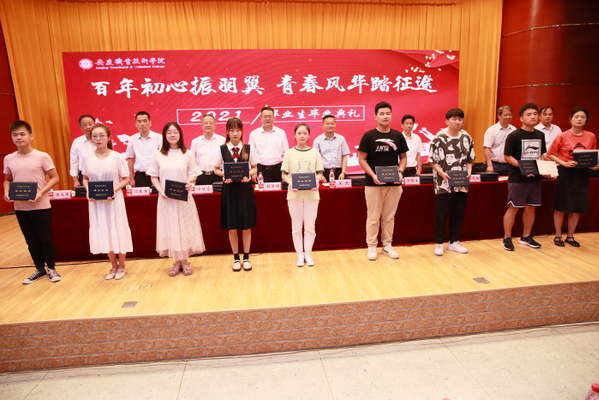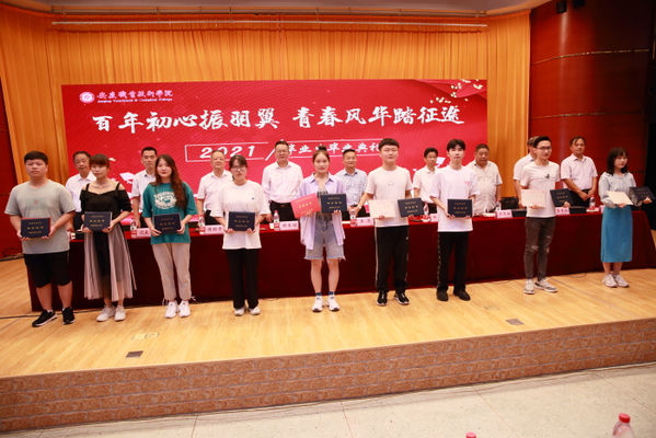 典礼上,学校对优秀毕业生进行了表彰。程飞宣读学校2021年优秀毕业生的表彰决定。校领导向优秀毕业生代表颁发毕业证书并合影留念。