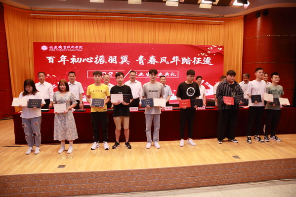 仪式上,辅导员代表冯丰、教师代表张建飞、优秀毕业生代表李翔宇分别发言。安徽盈创石化检修安装有限责任公司董事长胡荣昭也向毕业生们送上了殷切祝福。