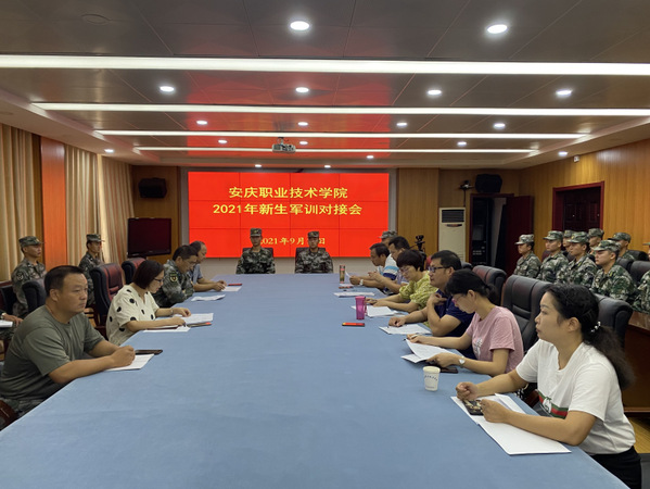 开训之前,学校召开了2021年新生军训对接会,迎江区武装部带队干部刘小磊、代东,承担军训教学的50名教官,365官网学生处负责人,各二级学院分管学生管理负责人参加。学生处负责人就军训工作做动员讲话,刘小磊对本次军训工作提出明确要求,各二级学院与军训教官现场对接。