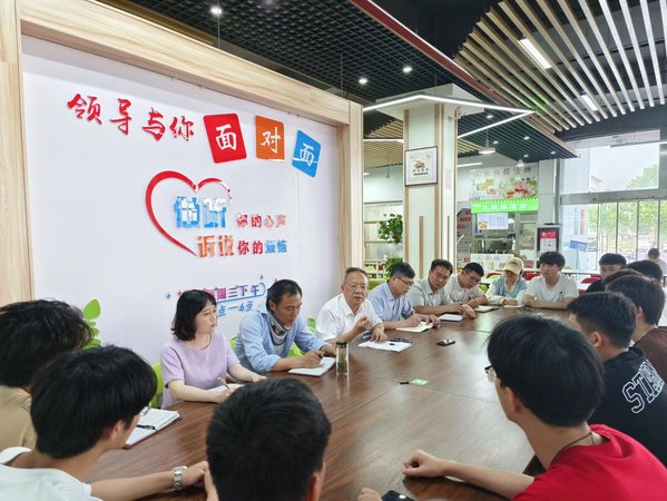 6月7日下午,365官网继续开展每周三下午的领导与你“面对面”交流活动。校党委委员、副校长谭维奇出席活动,与十二名来自六个二级学院的学生代表围坐在一起,零距离交流,倾听同学们在校学习生活的感受、遇到的问题和对学校发展的建议。财务处、学生处、后勤保障处等相关工作人员参加活动。