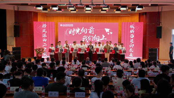 李五一代表校党委宣读关于表彰2023届优秀毕业生的决定。校领导为受表彰学生代表颁发荣誉证书和毕业证书,并合影留念。