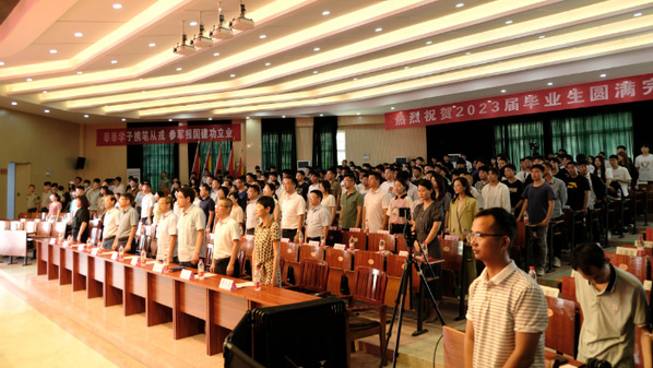 上午9点整,毕业典礼正式开始,全场起立高唱国歌。