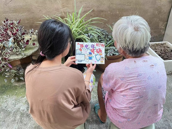 建筑工程学院22装饰工程三班同学在主题班会课上学到了很多保护自我的安全技能和防护方法。不仅提高了自主防范意识,训练自救本领,转被动学习知识为主动技能获取。该班多名同学认为自己不仅是安全知识的获得者,还应该是安全意识的践行者,安全技能的宣传者。吴健健、秦学明、夏紫莹 、穆慧龙、彭景琦等同学自主手绘防溺水、防诈骗简笔画和手抄报等,积极参与本地社区安全教育入户宣传。他们高兴的说:“能将在学校学到的安全教育知识告诉我们身边的朋友、邻居,这是暑假做的最有意义的事。”