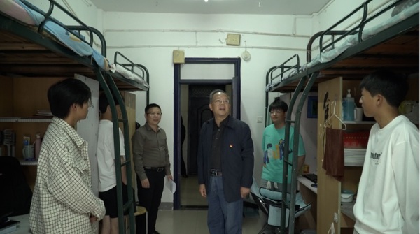 谭维奇一行在六号学生公寓楼,查看了消防安全门的改造、公共栏杆、学生宿舍内部卫生用电安全等情况。他关切的询问同学们的学习生活怎么样,有没有蚊虫、宿舍电压够不够用等。当看到部分宿舍卫生整洁、装饰较好,他指出整洁干净的宿舍环境是对自我的约束,学校要确保同学们住的安全、住的放心,要求各部门要履行好工作职责,提升管理水平和服务质量,为学生们的学习、成长提供有力保障。(文:董方涛 图:宣传部 审稿人:李专)