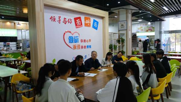 10月11日17时,校党委委员、副校长谭维奇在食堂一楼开展“领导与你面对面”交流活动,与来自六个二级学院的八名同学坐在一起展开了交流,倾听同学们在学习、生活等方面遇到的困难。学生处、后勤保障处、教务处等部门参加。