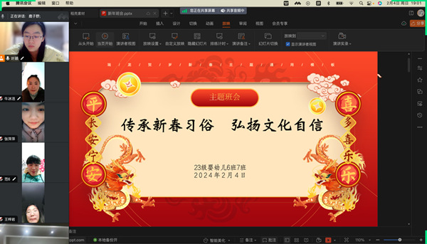 为进一步加强寒假期间学生思想政治教育工作,积极营造温馨和谐、安全文明的节日氛围,做到学生管理工作“不断线”,365官网开展“传承新春习俗、弘扬文化自信”主题班会活动,各班级利用腾讯会议、钉钉、超星系统等网络平台,在春节前召开了一次形式多样、内容丰富的线上“云”班会,家校联动积极开展传统文化教育。