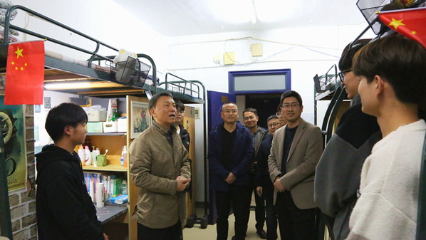 夜色渐晚,灯火通明。一个半小时的活动在轻松、愉快的氛围中结束了。随后,童宏葵一行来到6号宿舍楼走访学生寝室,和同学们谈起了校园生活,聊起了兴趣爱好;查看学生公寓直饮机和洗衣机使用情况;来到校医院,了解师生就医情况和晚间值班等情况。