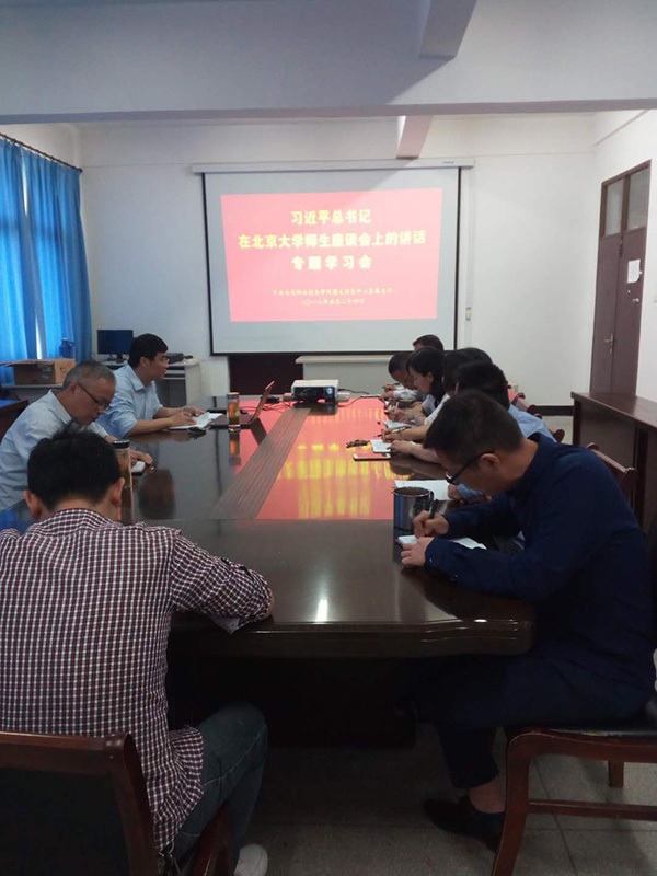 5月24日,图文信息中心直属支部召集党员同志在四楼会议室集中专题学习习总书记在北大师生座谈会上的讲话,深刻领会习总书记重要讲话精神。