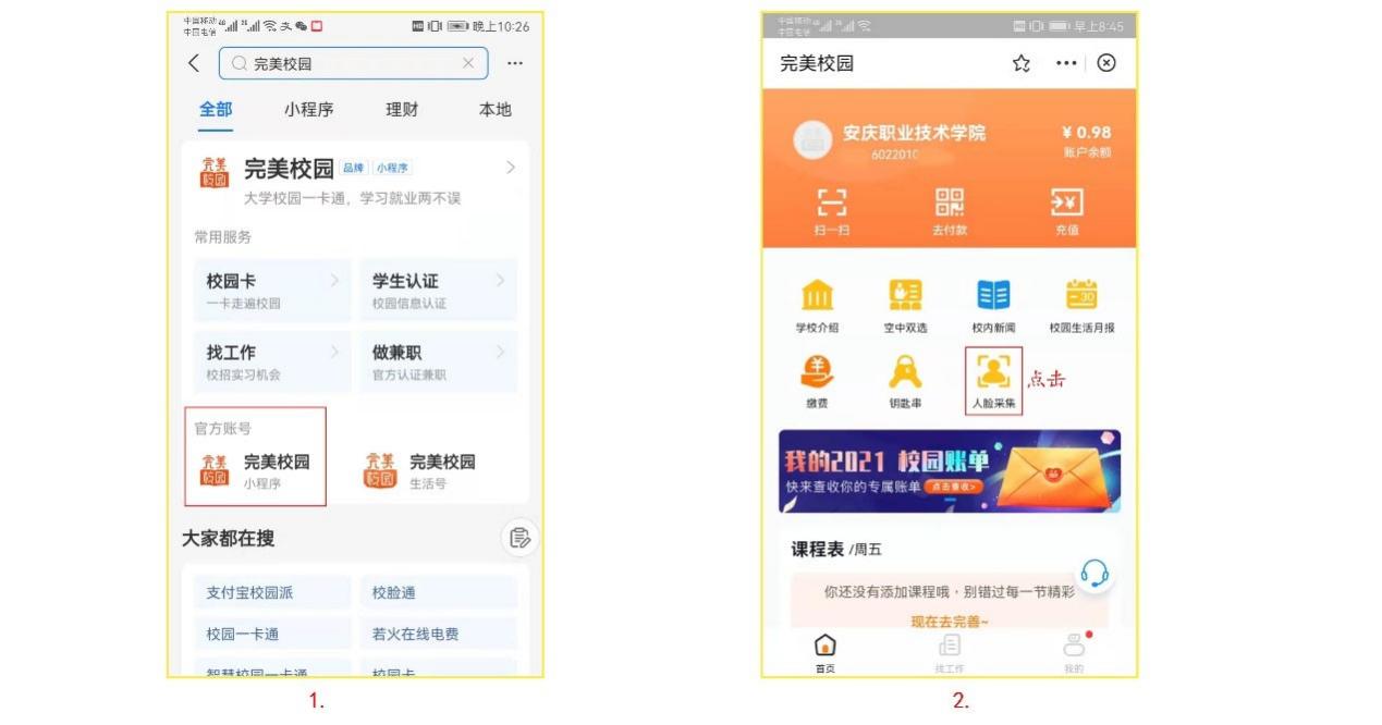 学校进出学校,班级或寝室都将采取人脸加刷卡功能,为方便使用需要在支付宝“完美校园”小程序或完美校园”APP中录入人脸信息或上传个人照片。以便今后进入校园和宿舍门禁或闸机。