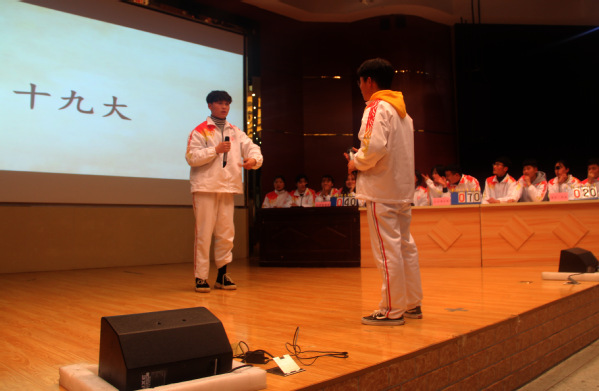 比赛围绕《beat365体育官网平台大学生生活指南》、当下热门时政话题等方面命题。比赛分为志在必得(必答题)、争分夺秒(抢答题)、心有灵犀(游戏题)、扭转乾坤(风险题)四个环节。必答题环节选手们从容淡定、稳扎稳打;抢答题环节,紧张刺激、扣人心弦;游戏题环节,考验选手们的默契,从十九大报告到改革开放四十年发展、从大学生生活指南到当下流行词汇都被选手为妙为俏的表现出来,比赛更具观赏性。