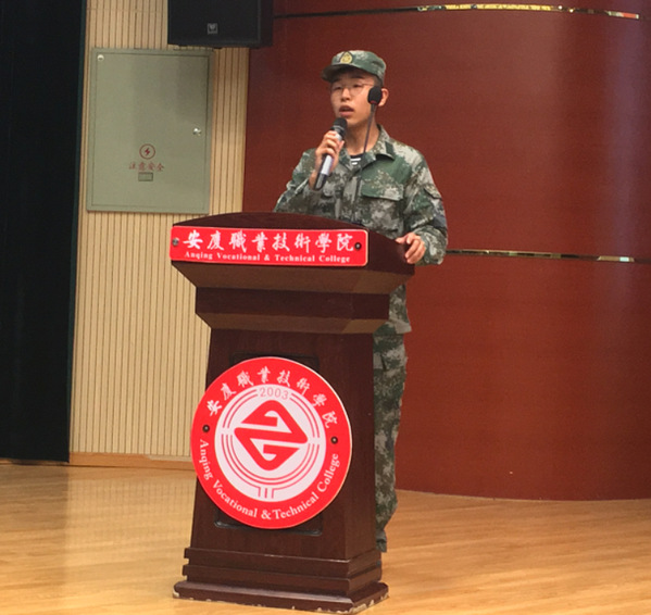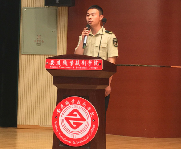 电子信息系盛翰鑫、蒋成栋,社会事业系朱保锁、董志成,经济贸易系金铭铭、刘帅,机电工程系赵诚、朱博,建筑工程系杜国庆、曹丹峰,园林园艺系丁威,11位退役士兵代表依次上台分享了他们的军旅生活和参军体验,做了精彩的事迹报告。精彩的退役士兵专场报告会让同学们热血沸腾,军人退役不退志,退伍不褪色,典型榜样的示范引领进一步激发了广大学生的爱国情怀、国防意识和参军入伍的热情。(文/黄勤、姚欣悦 图/任俊虎、鲁松、黄勇)