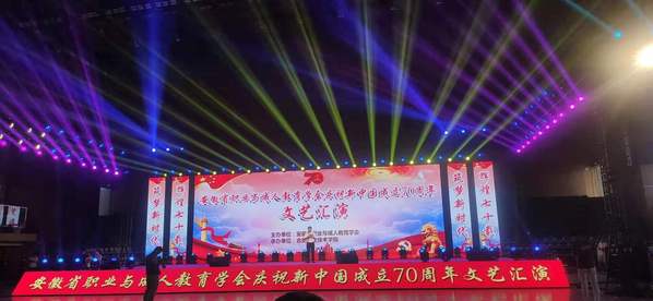 为庆祝中华人民共和国成立70周年,引领广大职教人充分认识新中国成立以来的光辉历程、伟大成就的宝贵经验;热情讴歌党的革命历程和丰功伟绩,深情表达职教人永远跟党走的信念,真情展现职教人“不忘初心、牢记使命”的精神风貌,由安徽省职业与成人教育学会主办、合肥职业技术学院承办的“辉煌70载,筑梦新时代”庆祝中华人民共和国成立70周年文艺演出于9月27日下午在合肥职业技术学院汇心湖校区体育馆举行。我院学生祝浩、孙露娟的《我和我的祖国》朗诵节目经前期组委会评选最终参加了本次汇报演出。本次演出共有38所高职院校参与,最终20所院校16个节目参加当天汇报演出。