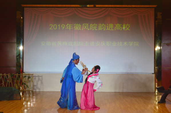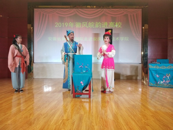 为传承弘扬戏曲文化,培养学生戏曲素养,营造校园戏曲文化氛围,推进戏曲艺术发展。由中共安徽省委宣传部、省教育厅、省文化和旅游厅主办,安徽省黄梅戏剧院承办“2019校园大舞台——徽风皖韵进高校”戏剧展演活动12月30日走进我院。党委副书记、院长毕明生,党委委员、组织统战部长程飞出席活动。学生处团委负责同志、各系党总支副书记、团总支书记、辅导员等师生代表500余人观看了演出。