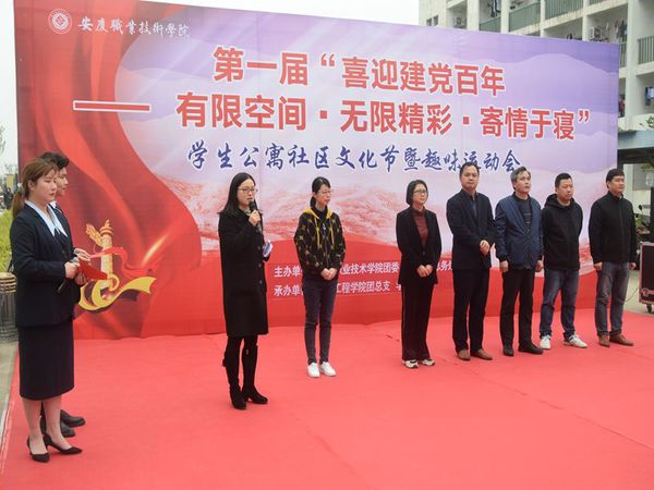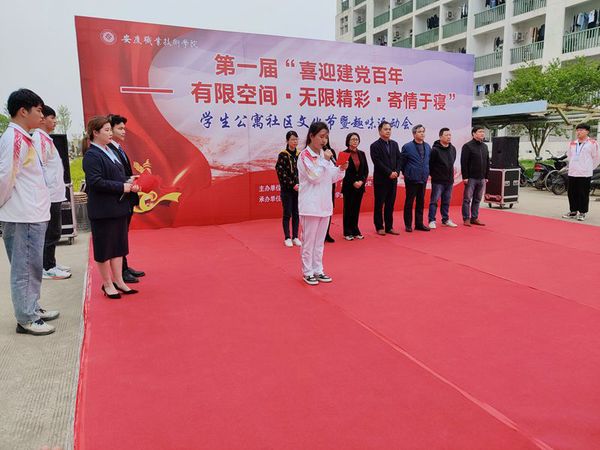 为加强大学生学生社区公寓文化建设,培养学生集体主义精神,增强集体荣誉感,充实大学生公寓文化生活,4月14日下午,由校团委、学生处、总务处联合主办的第一届“喜迎建党——有限空间·无限精彩·寄情于寝”学生公寓社区文化节开幕式暨趣味运动会在2号公寓楼门口隆重举行。校党委委员、组织部长程飞出席开幕式,校团委、学生处、总务处负责同志,各二级学院党总支副书记、团总支书记、专职辅导员老师以及各二级学院学生代表参加了活动。