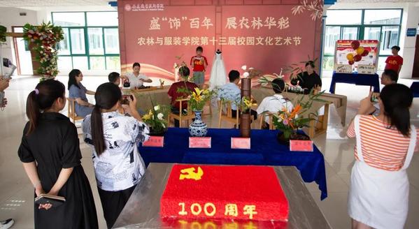 6月16日,农林与服装学院举行“盛‘饰’百年·展农林华彩”展览。园林技术专业的同学们展出的主题模型“水岸红船”将首创精神、奋斗精神、奉献精神完美融合;食品质量与安全专业同学们制作出“党史百年”主题蛋糕,每枚蛋糕代表一次党史上的重大事件,一条红丝带贯穿其中,象征中国共产党100年走过的光辉历程;园艺技术专业同学们手工编制出“百年花艺拱门”造型;植保专业同学们将植物标本与彩米结合,制作出四幅党史主题作品;服工服饰专业的同学们缝制了具有哥特、文艺复兴、巴洛克、洛可可、浪漫主义、新工业时代风格的12件模特服装。各专业同学们纷纷用作品表达了对党和祖国的热爱之情。