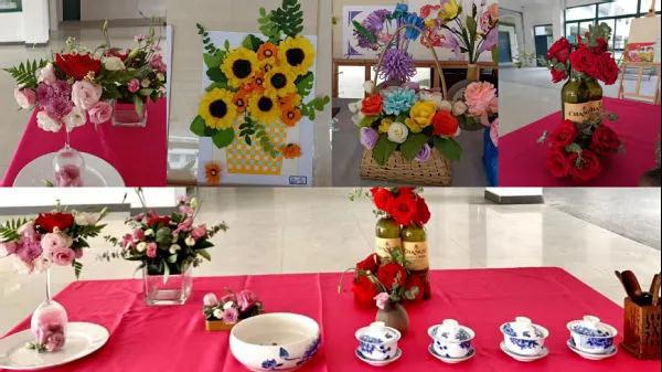 5月26日管理服务学院举行校园文化艺术节手工作品展。管理服务学院围绕建党百年展出学生学习成果。幼儿发展与健康管理专业的手工艺折纸、手工花艺、剪纸等;酒店、旅游管理专业的插花、调酒、西餐宴会摆台以及学生的书法、绘画作品等。同学们精心创作的手工折纸、花艺作品栩栩如生、惟妙惟肖;一幅幅书法绘画作品娟秀有力、造型生动;精美的插花作品绚丽多姿、美不胜收;西餐摆台配上鲜花与美酒,令人心旷神怡。