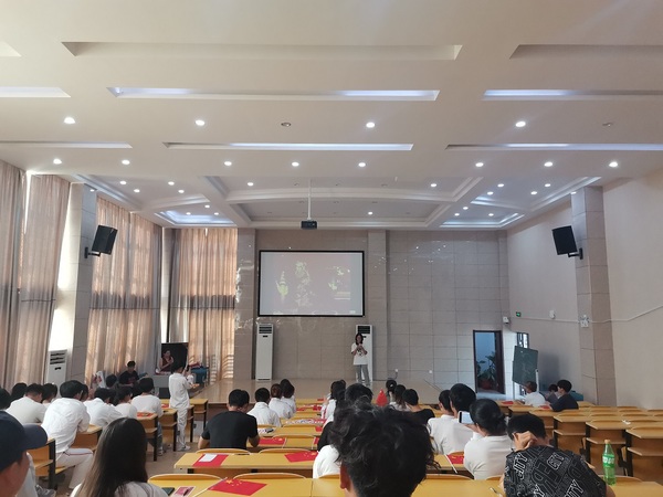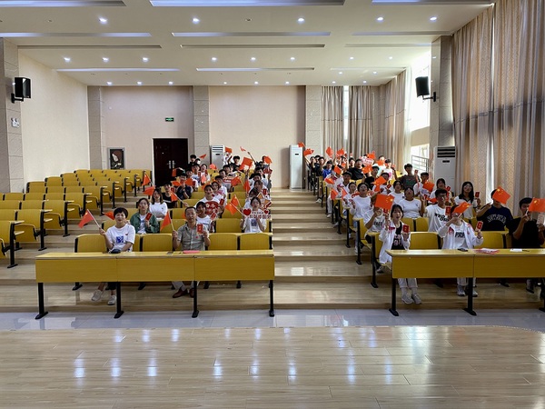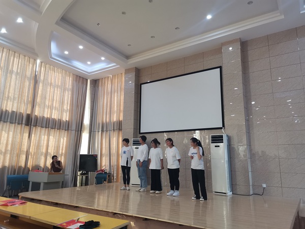 活动共分为四个环节:党团(知识)快答、比猜红歌、山河远阔、寄语华夏。在党团知识快答环节,同学们五人一组,积极踊跃地回答问题,每组积分最高的三位同学获得了奖品;在比猜红歌环节,李进恩和许咏梅走进同学们中间,先后加入了两组猜歌队列,通过师生互动诠释了浓浓的节日氛围,三组积分最高的同学获得了相应奖品。