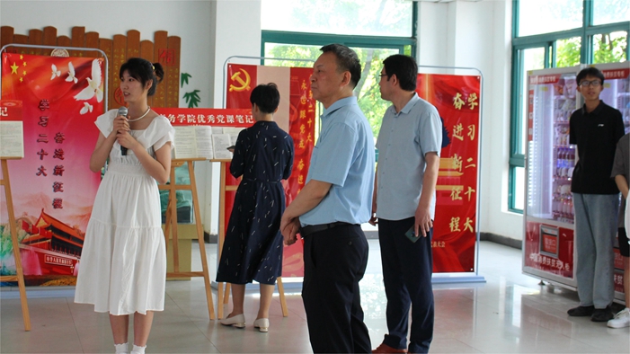 第二展区为学院第32期党课学员优秀党课笔记和党建海报展区。一份份精美的笔记,条理清晰、内容完整、字迹工整,记录了学员们在党课培训中的真实学习历程,对课堂知识的理解和领悟,展现出党课学员们认真严谨的学习态度和学习作风。
