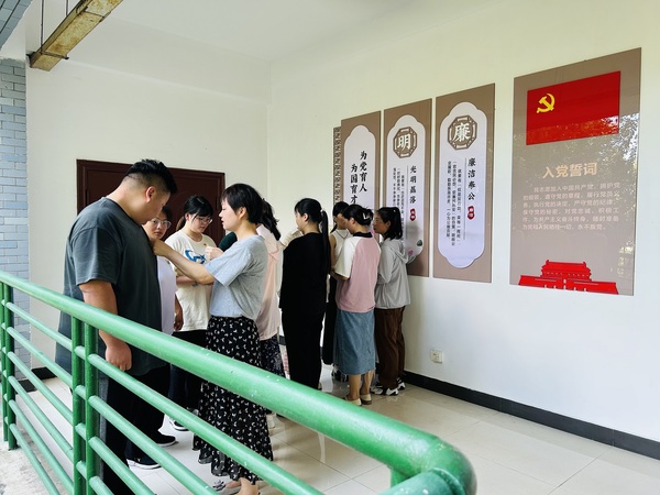 学校“清风苑”廉洁文化教育基地由廉洁之路(LJ)、廉洁文化石刻、铜画望廉墙、镜面正衣冠、廉洁文化长廊等组成。校监察审计处处长汪群老师带领大家逐一对各部分进行深度讲解,全体党员了解到“LJ”鹅卵石廉洁之路、廉洁文化石刻、铜画望廉墙的深刻寓意。师生齐聚廉洁文化长廊,认真观看了“序言”、“廉史镜鉴”、“格言警句”、“时代楷模”、“清风习语”、“崇廉尚洁”、“警钟长鸣”、“结语(爱廉说)”这八大展板,在场的每一名党员都受到了强烈的思想冲击和心灵震撼,也更加坚定了严于律己、清正廉洁、洁身自好的信心与决心。