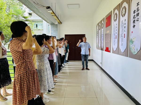 活动最后,教师党员现场为从全省各地赶回学校参加毕业典礼的11名预备党员们佩戴党员徽章,以这一庄重的仪式共同庆祝这特别的生日,学院总支书记李进恩带领师生共同举行“领读入党誓词、坚守初心使命”宣誓活动。在中国共产党成立102周年来临之际,学院组织新老党员一起开展廉洁教育主题党日活动,既是学院全面落实习近平总书记关于党风廉政建设、廉洁文化建设等重要论述的系列活动举措,加强对党员廉洁风险防范,营造崇尚廉洁的警示教育活动之一,也是师生之间共同的理想与信念的精神洗礼,是学院全面落实立德树人根本任务,进一步完善我院“三全育人”工作格局,扎实推进思想政治工作高质量发展的体现。通过本次沉浸式体验教育活动,学院将持续推进党风廉政建设各项工作,引导全体党员不断检视初心,强化政治素养,争做坚守信仰、求真务实、开拓奋进的新时代清廉人。(文、图:唐玲 审稿:许咏梅)