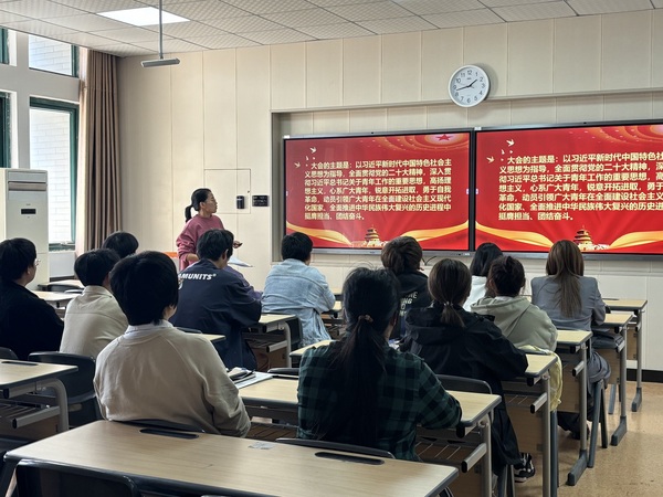 团总支书记唐玲带领学生干部学习了《中国共产主义青年团第十九次全国代表大会精神》,介绍共青团十九大大会的概况,向大家讲解了大会的召开背景、主题、任务、两个决议及大会选举等内容,与会学生干部明确了中国共青团的初心和使命是坚定不移跟党走、为党和人民奋斗以及中国共青团必须始终做到红心永向党、绝对忠诚等具体内容,要切实当好新时代党的忠诚助手和可靠后备军。