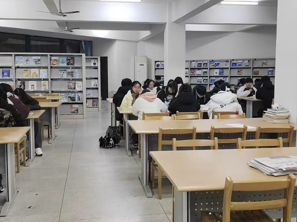 无论是四季如何轮转,学生的面孔是换了又换,周日至周四的晚自习时间,学校图书馆的阅览室总是坐满了学生但又井然有序,有的在低声交流,有的在奋笔疾书,有的沉静思考、有的沉浸在书籍当中。一张张年青的脸庞已成为安静宽敞阅览室的风景线,这种现象自2021年开始至今已经持续了三年。2023级园艺专业学生荣晶晶和辅导员老师严彤彤反馈在阅览室晚自习的心得体会:开始到图书馆上晚自习毫无感觉到非常期待再到非常享受。三年前农林与服装学院自启动书香校园活动开始,了解到学校图书馆的阅览室学生进馆学习人数不是很多,于是改变以往学生只能在本班教室上晚自习模式,联合图文信息中心开放阅览室提供给农林与服装学院的学生上晚自习,此举措得到图文信息领导和教师的大力支持。每年新生入馆进行晚自习之前,老师们都会对学生们进行文明阅读的教育与要求,温馨提示学生爱护图书等公共资源,入馆即静,维护图书馆的良好公共秩序等内容,并及时更新杂志及书籍。每天晚上18:50,轮转到的班级,在图书馆一楼大厅整队集合,井然有序的进入图书馆开始自习。馆内的大量书籍丰富了同学们的阅读范围,激发了学习动力,极大的提高了学习热情。在阅览室老师的有效管理下,各班级到了晚自习的下课时间,同学们及时整理好课桌椅然后才安静的离开图书馆。