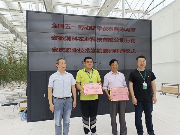 为深入推进教师队伍建设工作,创新“师带徒”方式,农林与服装学院组织开展“名师导师带徒”工作。4月24日,农林与服装学院党总支书、院长李进恩带领植物保护与检疫和园艺技术专业团队教师在安徽润科农业科技有限公司向全国五一劳动奖章获得者陈再高和安徽润科农业科技有限公司副总经理万铭拜师。此次活动旨在帮助青年教师更快更好地成长,为教育事业贡献更多的力量。