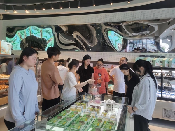 在工作人员的引导下,同学们来到了优美滋吾悦门店,参观了该门店不同岗位的工作区域,对烘焙食品生产的各个环节有了更直观的认识。工作人员还邀请同学们试吃店内的产品,体验公司产品的口感和质量。在随后的座谈会上,该公司人事经理介绍了公司的发展历程和方向,并就学生们关心的实习岗位、薪资待遇等问题进行了详细解答。