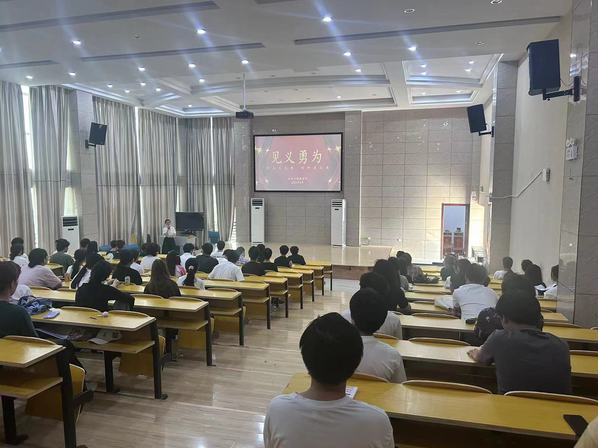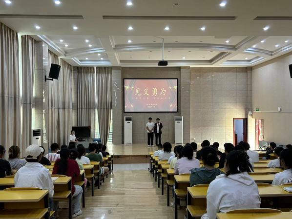 6月12日下午,农林与服装学院组织开展了一场特别的宣讲活动:近期因见义勇为、见义智为,成功救起落水者的2023级园艺技术一班的章传祯、郭超与同学们分享了当天的救人事迹。学院团总支学生会成员、大一部分班级学生代表共计七十余人参加此次活动,活动由辅导员严彤彤主持。